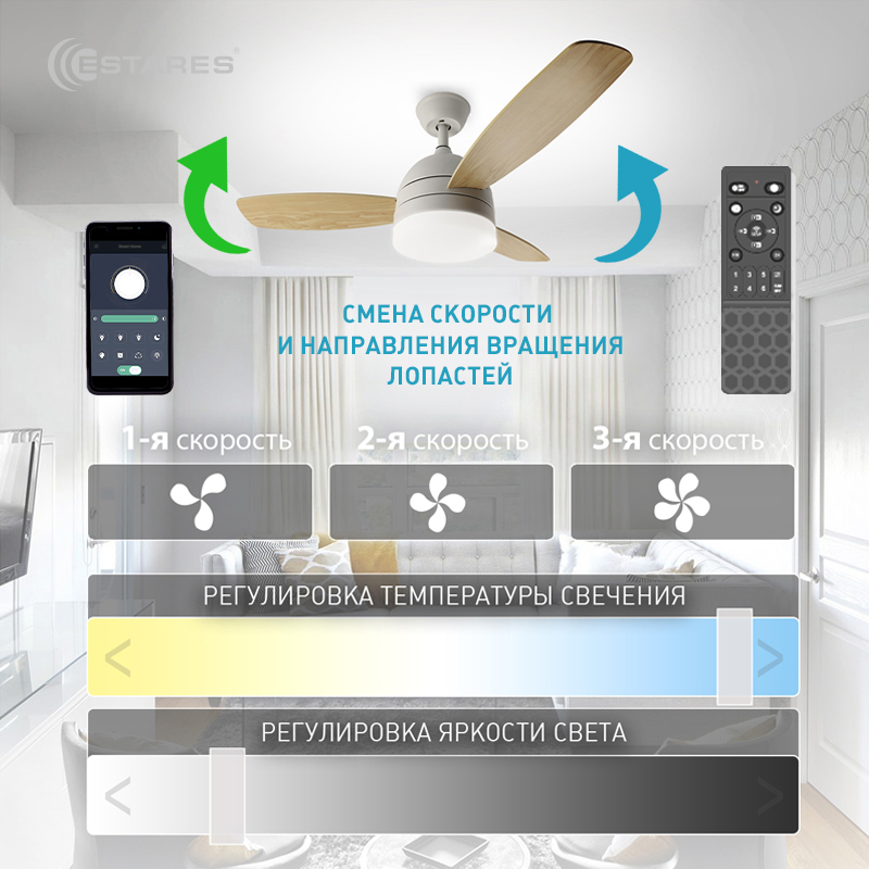 Светодиодный светильник (люстра) со встроенным ВЕНТИЛЯТОРОМ с ДПУ и функцией управления со смартфона